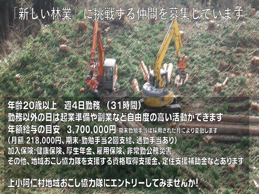 私たちと一緒に新しい林業の「かたち」を実現する「上小阿仁村地域おこし協力隊」を募集します。