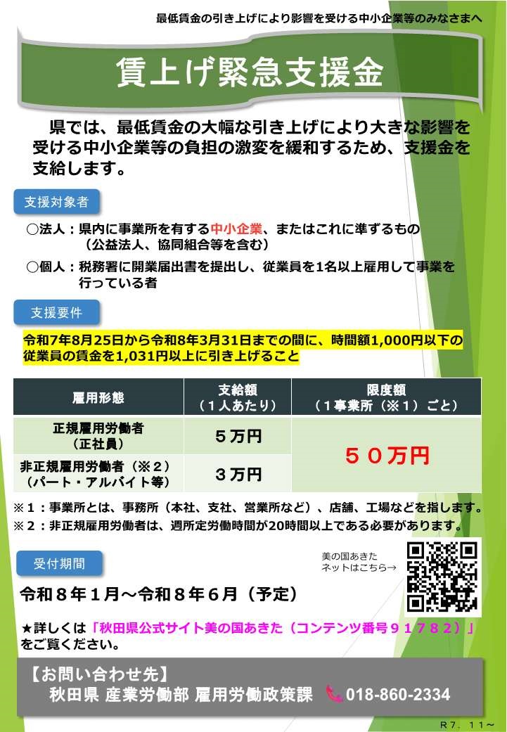 県では、最低賃金の大幅な引き上げにより大きな影響を受ける中小企業等の負担の激変を緩和するため、支援金を支給します。