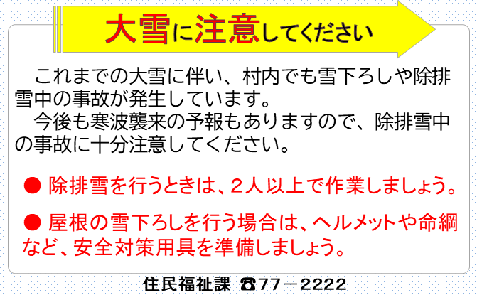 1月23日 午後0時00分 上小阿仁村豪雪警戒部を設置しました